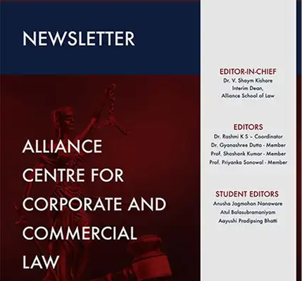 Alliance School of Law has set up an exclusive Centre for Corporate and Commercial Law, named as the Alliance Centre for Corporate and Commercial Law (ACCL), which offers a unique and powerful approach to prepare students to become transactional lawyers representing businesses and investors. After graduating, a student who has participated in the Corporate Concentration should have a theoretical and substantive foundation for corporate law fundamentals, including business associations, mergers and acquisitions and securities regulation.